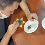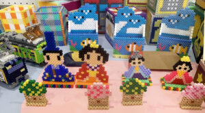 創作活動では、主にアイロンビーズを組み合わせて作った、新幹線や電車を始め、ペン立てや貯金箱、季節の飾りなど、色々な作品を作っています。